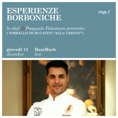 Nell’ ottica di una costante ricerca storico – gastronomica, alla riscoperta di gusti, sapori e profumi di un tempo, particolarmente significativa risulta essere stata, a partire dal 13 Dicembre l’organizzazione del ciclo di eventi “Esperienze Borboniche”, kermesse nel corso della quale si potranno gustare pietanze reinterpretate dallo Chef Stellato Pasquale Palamaro, Chef Resident presso il Ristorante Indaco dell’ Albergo della Regina Isabella a Ischia, che definisce la sua cucina “tendenzialmente di mare, tale da cercare di lavorare il pesce allo stesso modo della carne, privilegiando cotture rapide, ricercando prodotti poco utilizzati che magari richiedono un lavoro più certosino, tra le quali le alghe”.