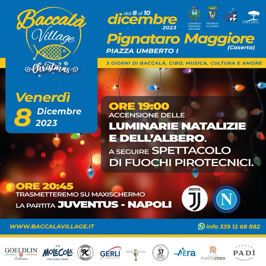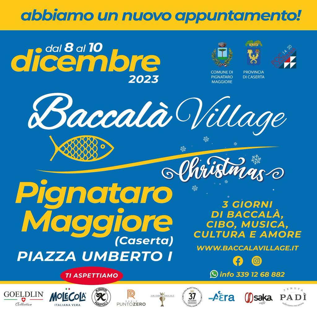 La quinta e ultima tappa 2023 del Baccalà Village si svolgerà a Pignataro Maggiore, in Provincia di Caserta, dall’8 al 10 dicembre (orario 19-24).