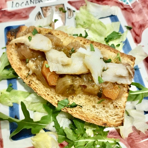 La bruschetta alla genovese di baccalà e l’inedito assoluto della pasta e fagioli con baccalà in questo weekend dell’Immacolata.