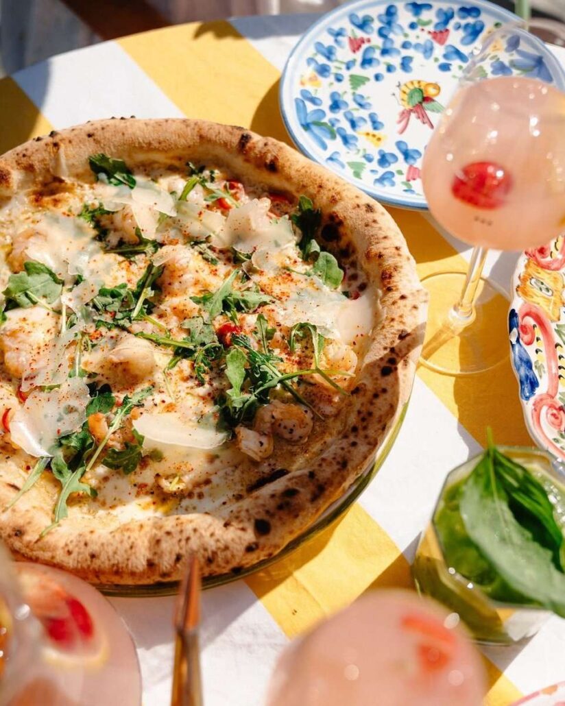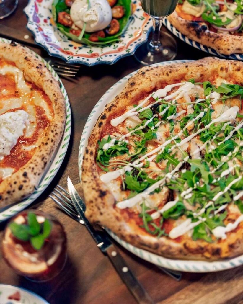 Tra le pizze offerte anche l’originale Giardino di Mamma, una proposta adatta alla clientela vegan del locale, con salsa di pomodoro San Marzano DOP, peperoni, melanzane, funghi portobello, peperoncino, zucchine, cipolla rossa, rucola e pinoli.