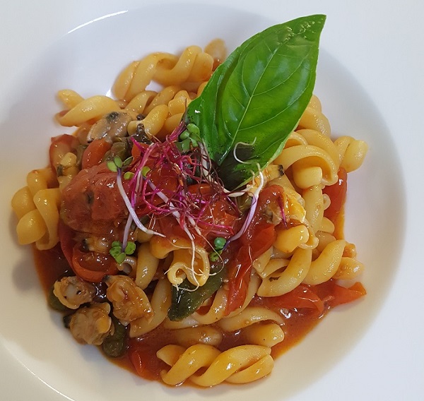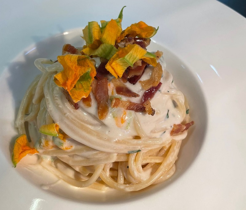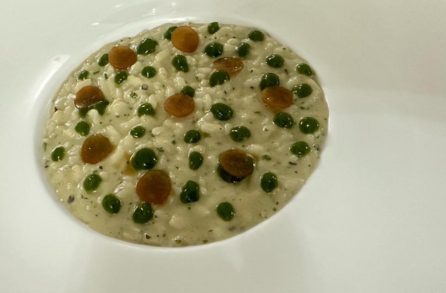 Il sugo allo Scarpariello preparato con pomodorino del Piennolo DOP del Vesuvio è davvero una poesia per il palato. Il risotto ai carciofi, con gocce di riduzione di basilico e sedano rapa marinato e affumicato è una proposta interessante.