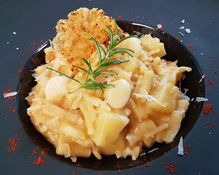 C’è da premettere subito una cosa: la Baita ha un laboratorio interno che svolge le funzioni di una pasticceria e gelateria, si occupa della panificazione e possiede un macchinario per fare la pasta e trafilarla al bronzo, persino quella all’uovo.