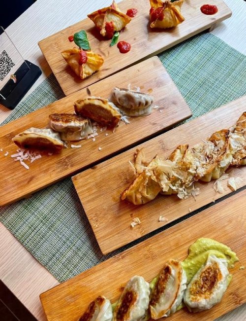 Altra specialità sono i ravioli Gyoza, proposti con zuppa di cozze, polipetti alla luciana, sugo alla genovese napoletana, col soffritto, o al ragù con cicoli, oppure con ricotta e provola.