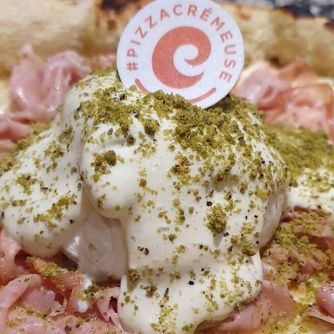 “Abbiamo inventato la pizza Crémeuse“, esclama poi il pizzaiolo. Si tratta di un incastro tra i sapori tipicamente italiani e le consistenze preferite dai francesi: le salse e i sapori morbidi.