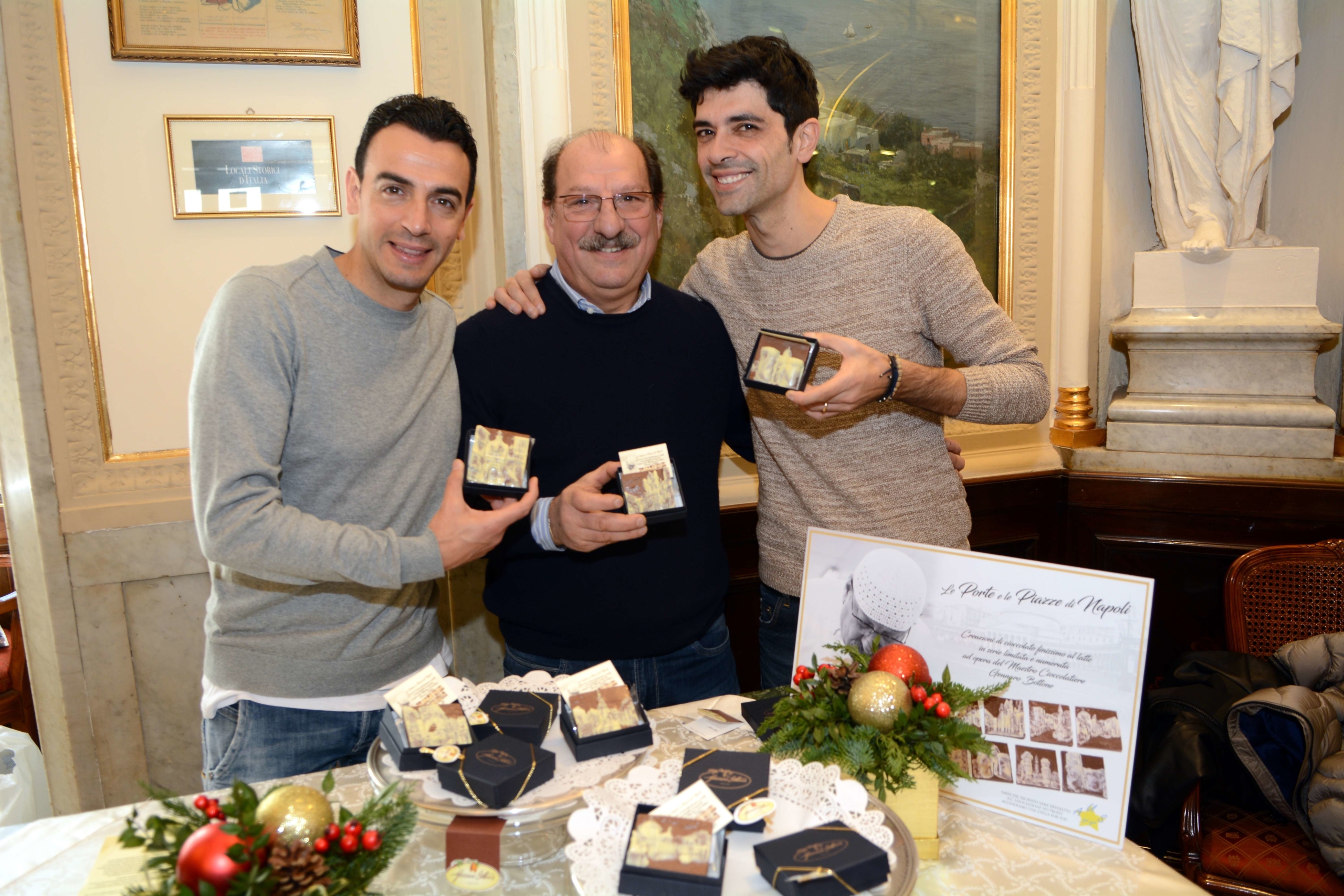 All’incontro hanno preso parte: il consigliere Francesco Vernetti – presidente commissione Made in Naples al Comune di Napoli, lo storico dell’arte e pubblicitario Silvio Fabris, lo scrittore Amedeo Colella, il maestro cioccolatiere Gennaro Bottone e il duo di attori e conduttori televisivi Gigi&Ross.
