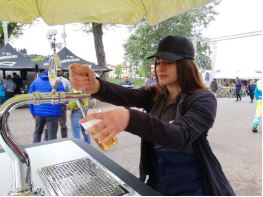 IL PROGETTO “BEERETTA”. Si tratta di un veicolo a tre ruote, la cui licenza è di proprietà della società umbra Giumalu, che da fermo può essere poggiato su un cavalletto che sollevando la ruota superiore da terra, e attaccando una dinamo, permette di generare energia elettrica che fa uscire la birra da un erogatore che si trova davanti al manubrio. Qui c’è sistemata tutta la parte dedicata al fruitore che potrà prendere da solo un bicchiere, sistemarlo su un apposito adattatore, e controllando con le pedalate l’erogazione della birra riempirsi il bicchiere.