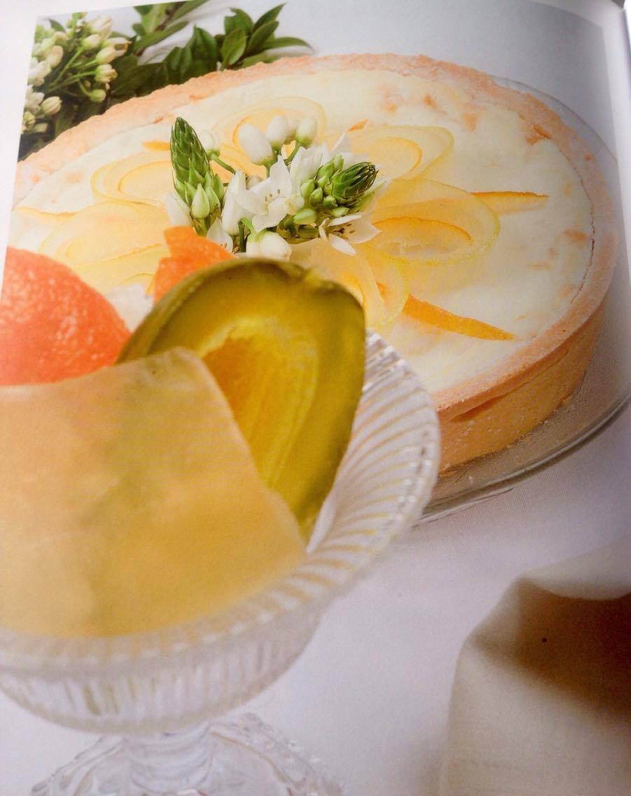 Pesta la Ricotta di Vacca ,poi bagnata con acqua di fior di aranci ,passata per setaccio e condita di zucchero,arancizucca,e cedro canditi,marmellata di fior di boragine,e pistacchi a filetti.Si metterà nella cassa di pasta senza coprirla d’altra pasta ,ma polverata di zucchero sopra ,si farà cuocere e si servirà lavorata di aranci,cedro ,zucca e pistacchi canditi.