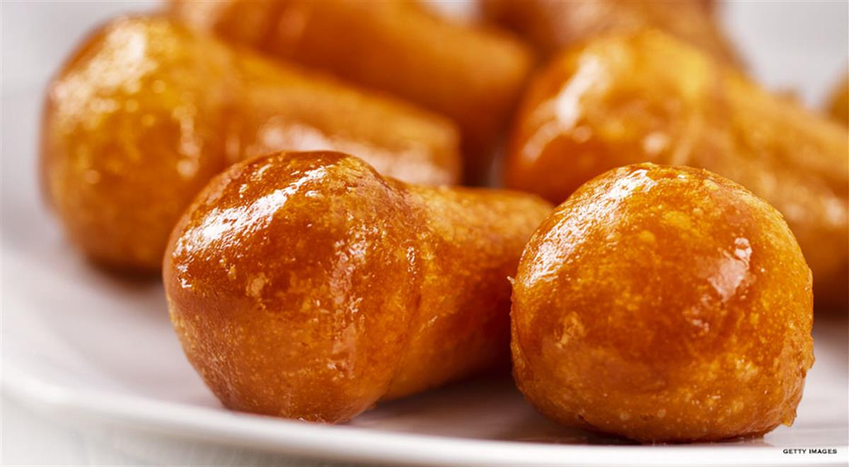 Sbattute bene con un frullo le uova in un vase,e condite di sale,si verseranno nel fior fi farina,col quale ben manegiato,se ne formerà una soda pasta,dalla quale ,riposata per qualche tempo ,se ne formeranno tanti maccaroncini,che tagliati in piccolissimi pezzi,come a pallini,ed infarinati per non farli attaccare,si friggeranno in strutto ,e cotti si legheranno con mele purificato, e si serviranno con zucchero polverizzato.