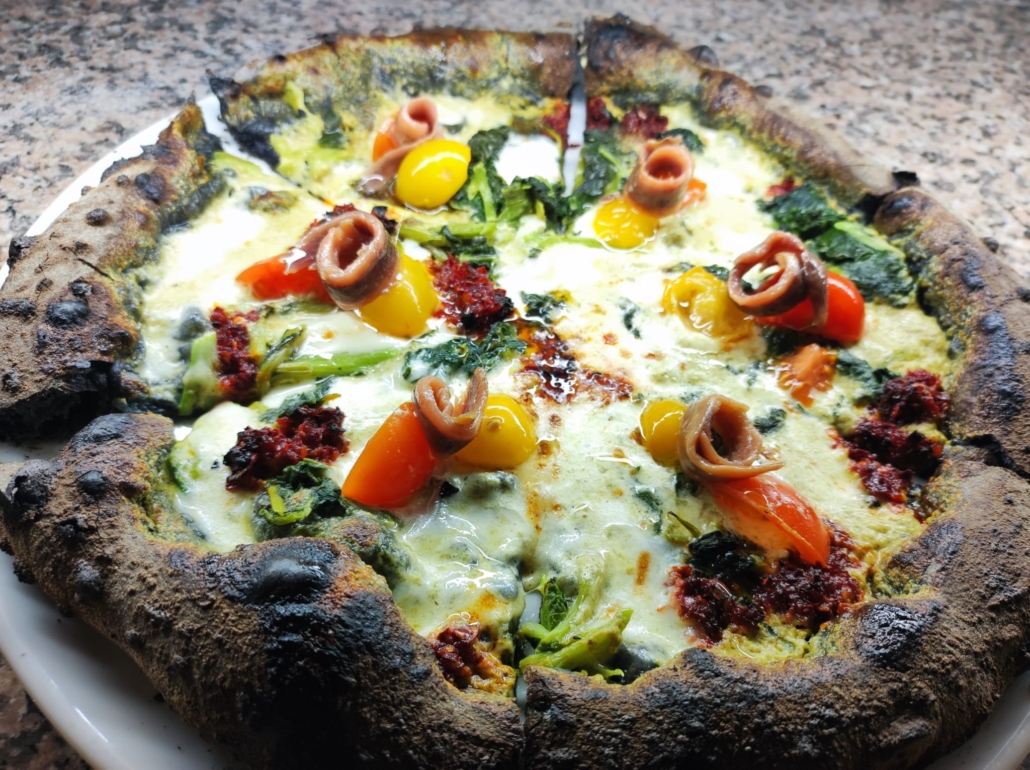 Tornando al lato pizzeria, l’impasto da 280 grammi con 24 ore di lievitazione garantisce un prodotto con cornicione croccante e base leggera.