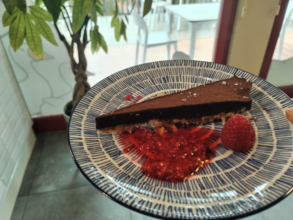 Si chiude in bellezza con un dessert dal cuore caldo e morbido: un tortino al cioccolato, con una sottile cialda di biscotto sbriciolato, con cioccolato Callebaut n.811, cristalli di sale di Trapani e polvere di cacao, abbinato all’Umeshu, sake giapponese da fine pasto, aromatizzato alla prugna.