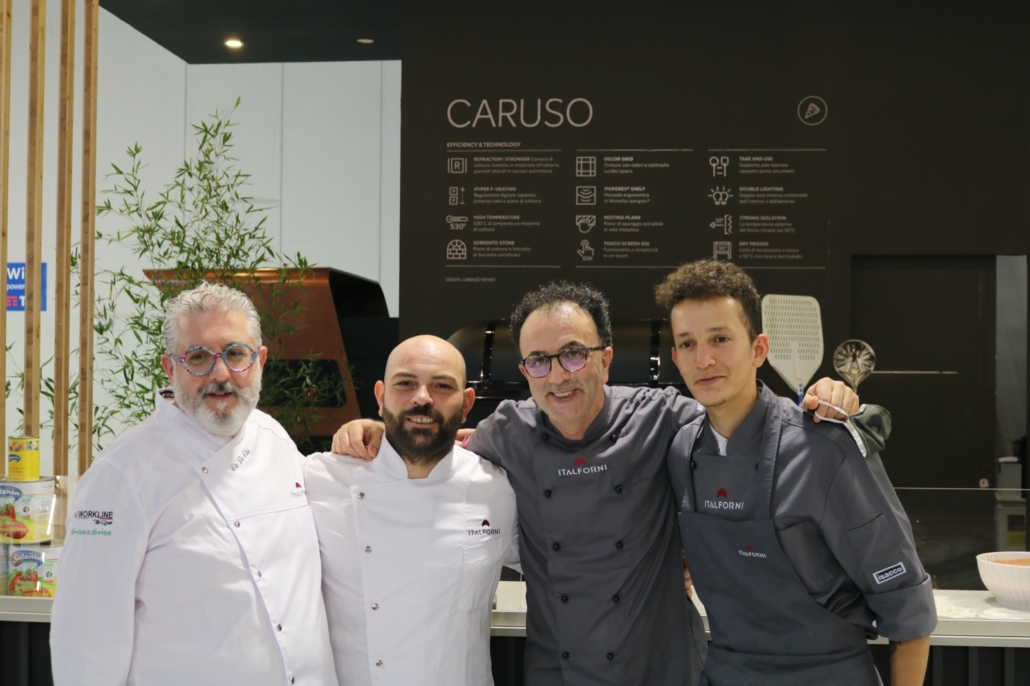 A testare il nuovo forno presso lo stand ITALFORNI del TuttoFood, i maestri pizzaioli di tutta Italia e non solo che si sono alternati in un ricco programma tra masterclass e showcooking. Il primo giorno ha visto la presenza di Vito De Vita, Direttore Associazione Scuola Napoletana Pizzaioli nonché consulente per la realizzazione del forno Caruso e di Angelo Caruso del gruppo PIE (Pizzeria Italiana Espressa). Al bancone, sabato, direttamente dagli USA, Pasquale Di Maio, VicePresidente “Associazione Pizzaioli in giro per il Mondo” e Marco Di Giovanni del Gruppo Assaje. Domenica, invece, si sono alternati domenica Luciano Sorbillo, titolare della pizzeria Pizz a’ street e consulente di vari format, Giovanni Senese della Pizzeria Senese di Sanremo e Giuseppe Ferranti “PeppOne” del gruppo Fratelli La Bufala. Tommaso D’Amoia, consulente istruttore, e Mario Stasio, titolare di Fratelli di Pizza a Pavia, entrambi del gruppo La Piccola Napoli, Agostino Landi della Pizzeria Del Corso di Capaccio-Paestum e Alfonso Saviello co-titolare della pizzeria Alchimia a Salerno, entrambi del team #Pizzaiolodentro, hanno testato Caruso lunedì mattina. Le presenze di Alberto Buonocore di FedeGroup e Patrick Ricci della pizzeria Patrick Ricci, 22° della classifica 50Top Pizza, hanno completato la giornata di lunedì. Durante l’ultima giornata, quella di martedì, Luca Tufano di PizzArt Battipaglia e Corrado Scaglione della Enosteria Lipen, 30° nella classifica 50TopPizza, hanno dato prova delle potenzialità di Caruso.
