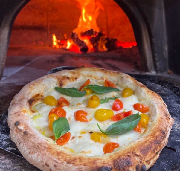 “La mia – Continua Vinciguerra – è una pizza contemporanea con un cornicione pronunciato e ben alveolato. Il nostro è un impasto diretto, realizzato con un mix di farine tra tipo 0 e tipo 1, con un’alta idratazione (circa il 70 %) e una lunga lievitazione, di circa 48 ore. Uno degli aspetti più interessanti della nostra pizza è la cottura nel forno al legna, che le conferisce un aroma unico”.