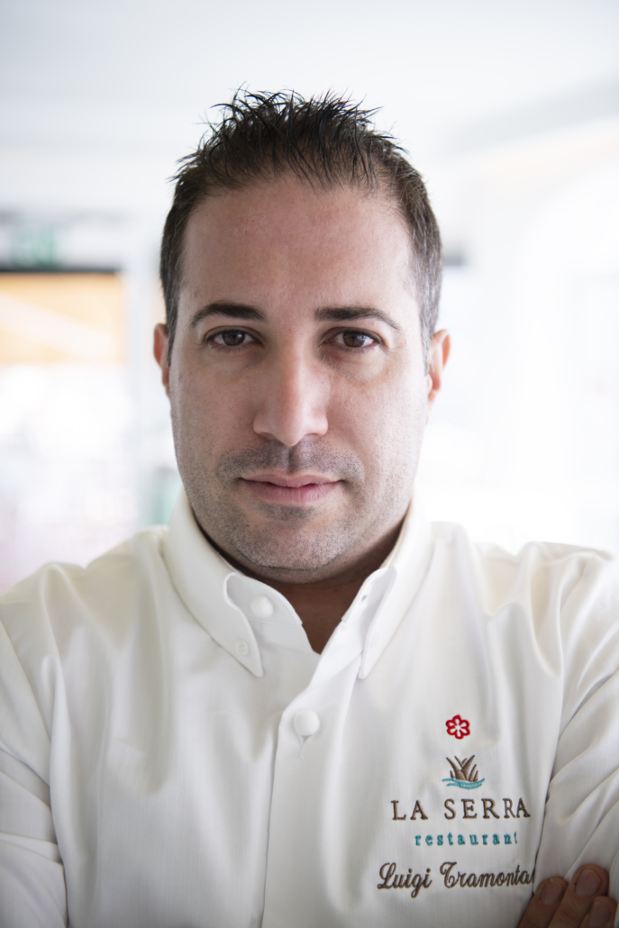 Lo chef Luigi Tramontano osa ed esce “fuori dagli schemi” di una cucina classica discostandosi da uno stile culinario standard e universalmente riconosciuto, per attingere a fonti gastronomiche astratte ma decisamente rivoluzionarie. I cerchi di Kandinskij si materializzano in spuntoni variopinti dove intingere prelibati assaggi di mare. L’emulsione di ostrica è raffinatissima e molto delicata; la maionese di rapa rossa e yogurt di bufala è deliziosa nella sua naturale compattezza; il gel di arancia e carote emana un profumo leggero, da una struttura morbida; la salsa di mela verde e lime è invitante perché d’effetto. Una variazione di crostacei primeggia tra le diverse forme del gusto. Il gambero rosso è in crosta di quinoa bianca in chicchi, legati da una base metingel; l’alternativa in versione mignon è un carpaccio adagiato su un’ostia di gelatina, a base di mela verde e agar agar, che simula nell’aspetto proprio l’eclissi lunare. La tartare di scampi in capsule è impregnata di colatura di alici e guarnita con trucioli di lime. L’astice blu è a cubetti e compone un’insalata decorata con una brunoise di mango stratificato e un saporito dragoncello tritato; un raviolo liquido realizzato con una purea tipicamente tropicale e pochi grammi di algin condisce incondizionatamente. “La tecnica è il presupposto della mia filosofia culinaria e l’ingrediente costante della sua realizzazione” – conclude Lugi Tramontano, chef del ristorante La Serra.