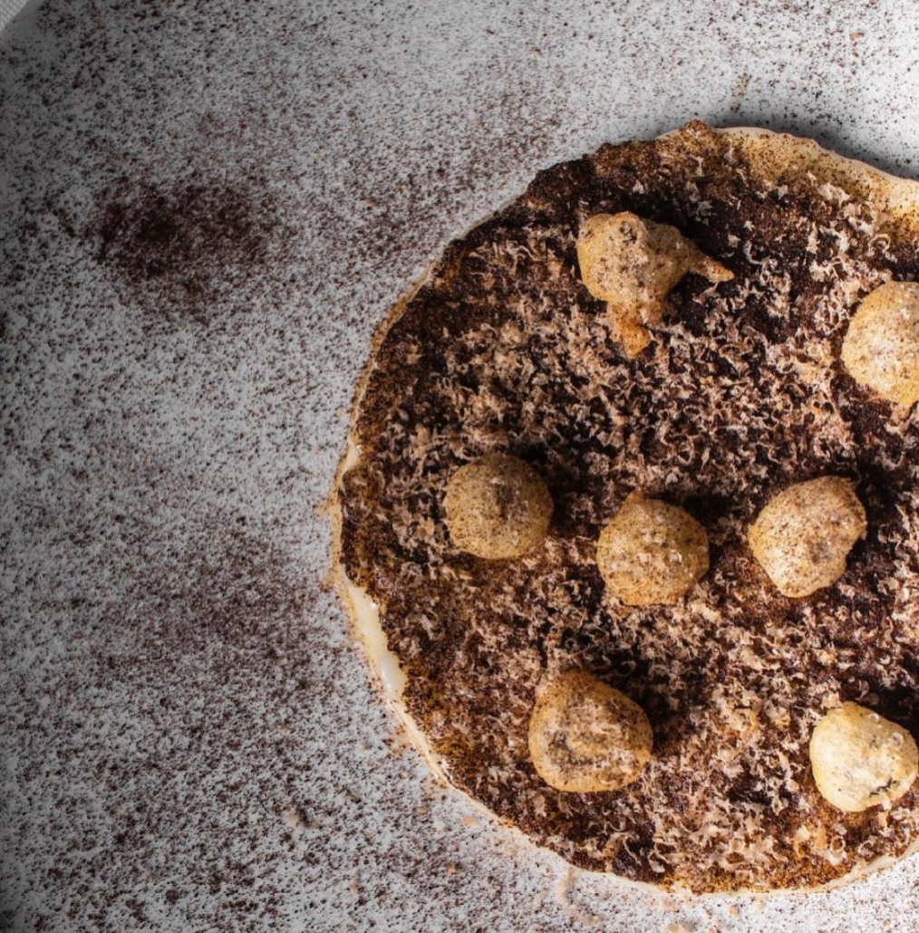 Il porro al Faro di Capo d’Orso viene servito tra fumo e cenere. Il protagonista di un secondo piatto totalmente vegetale, conquista senza indugio la mente dell’ospite che difficilmente dimenticherà un mix di consistenze memorabile. Un crumble soffice color argento brillante nasconde sotto una texture volatile un ortaggio arrostito sui carboni ardenti. Una spennellata di salsa alla senape e aglio nero richiama il gusto immediato e pungente della cottura a secco; una composta di limoni mescolata a un battuto di fagioli neri fermentati insaporisce con sentori contrastanti. In questo piatto unico il kokumi amplifica ogni singola percezione sensoriale. Antonio Cannoniero, sommelier e custode della rigogliosa Cantina de Il Faro abbina ad una “cucina spinta verso l’alto e con evidenti picchi” vini equilibranti. Uno Chardonnay di Borgogna di un’annata ben datata “tampona il sapore strong” di un piatto come il risotto. Strutturato ma morbido al sorso, questo bianco eccezionale “respira meglio” in un calice con corpo largo e apertura ampia; se servito ad una temperatura compresa tra i 14 e i 16 gradi diffonde in modo complessivo tutti gli aromi presenti. Un Riesling della Mosella accompagna il gusto ricco di una proposta “naturale” come quella a base di porro. Giovane e pregiata, questa etichetta riempie il palato, lo pulisce e poi lo conquista, soprattutto se sorseggiato ad una temperatura di 12 o 14 gradi e da un calice con un’imboccatura stretta, che sprigiona tutti i sentori del bouquet ma senza disperderli.