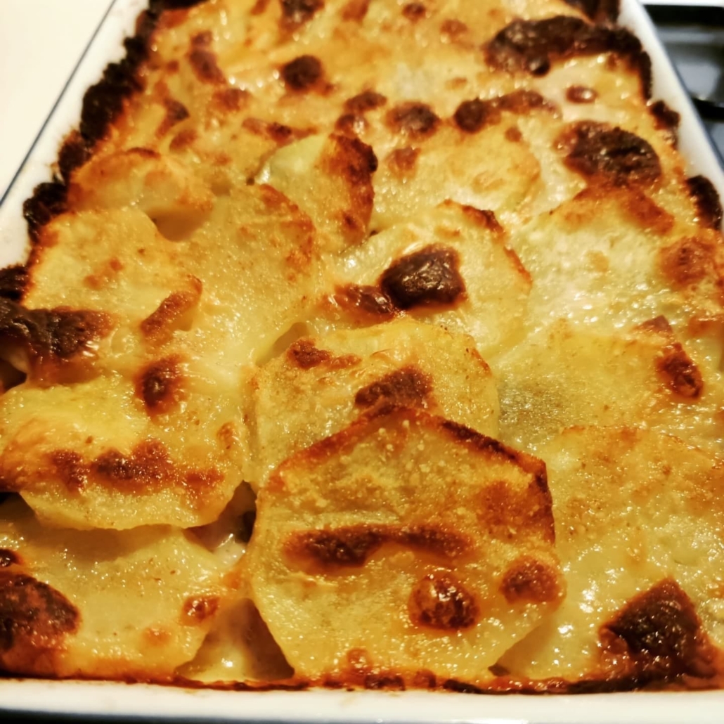 In una pirofila da forno mettere alla base un filo di olio evo, un cucchiaio di pangrattato ed un po’ di besciamella, fare uno strato con delle fette di patate, regolare di sale e formaggio grattugiato, aggiungere la cipolla tagliata a rondelle, ancora un po’ di besciamella, la scamorza affumicata a fette, il guanciale a cubetti e le olive verdi e nere denocciolate. Coprire con un altro strato di fette di patate, sale, un filo di olio evo e l’altro cucchiaio di pangrattato.