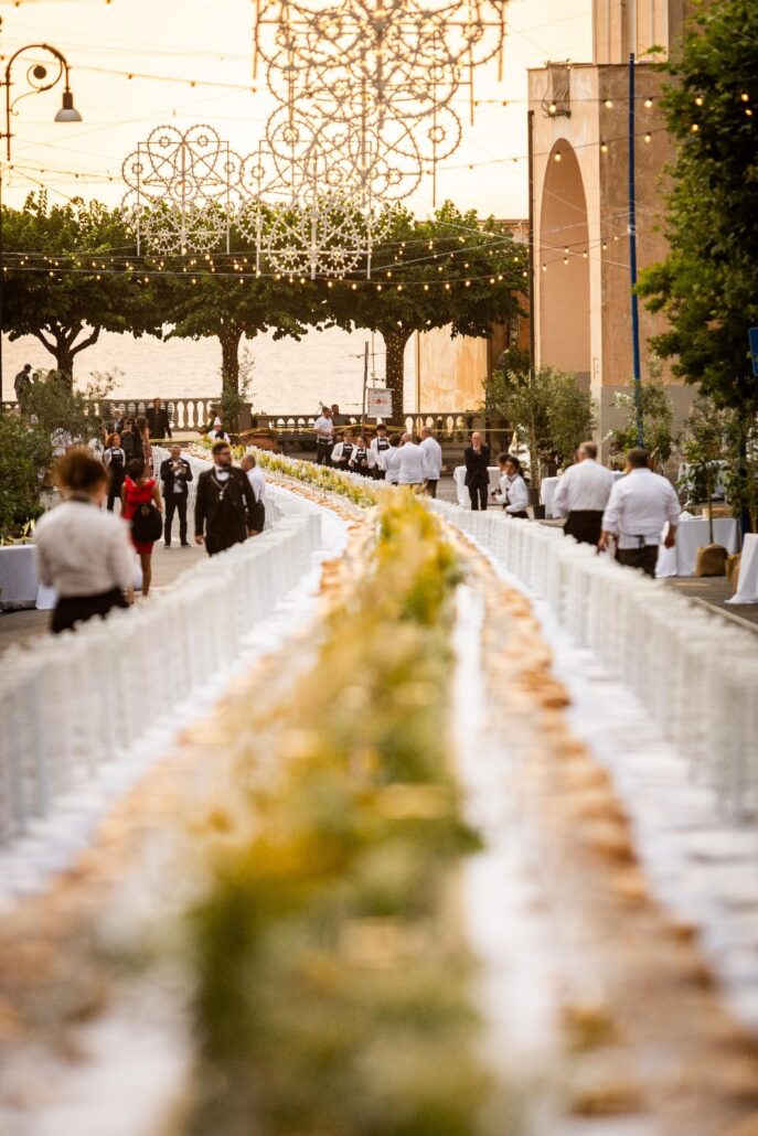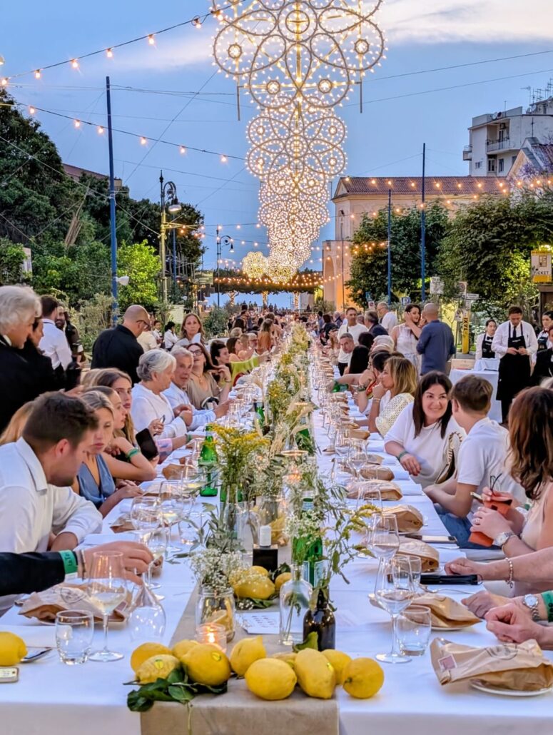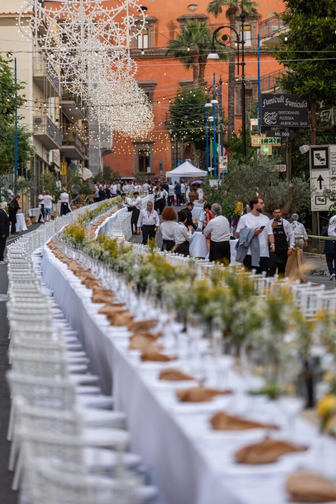 Si è conclusa ufficialmente oggi la II edizione di La Tavola dei 300, kermesse organizzata dall’Associazione Ristoratori Lubrensi, con il Patrocinio del Comune di Massa Lubrense. La manifestazione iniziata il 14 e 15 giugno con i tour tra limoneti ed uliveti, ha avuto il suo momento clou il 18 e 19 giugno, con la serata street food alla frazione di Monticchio e appunto la Cena con la Tavola dei 300 a Massa Centro, con ben 63 ristoratori in prima linea. Suggestivo ed incantevole lo scenario, che ha trasformato la frazione di Massa centro in un luogo romantico a cielo aperto, dove professionalità, buon gusto, musica ed allegria hanno animato la serata, applaudita con clamore.