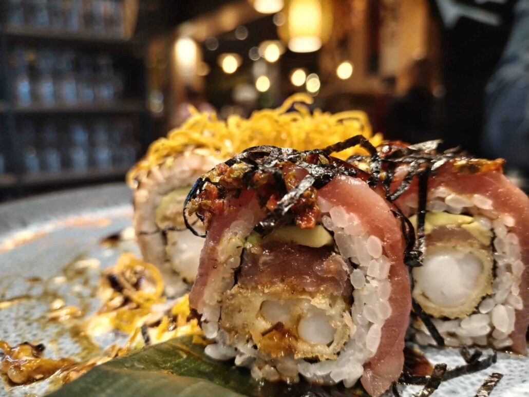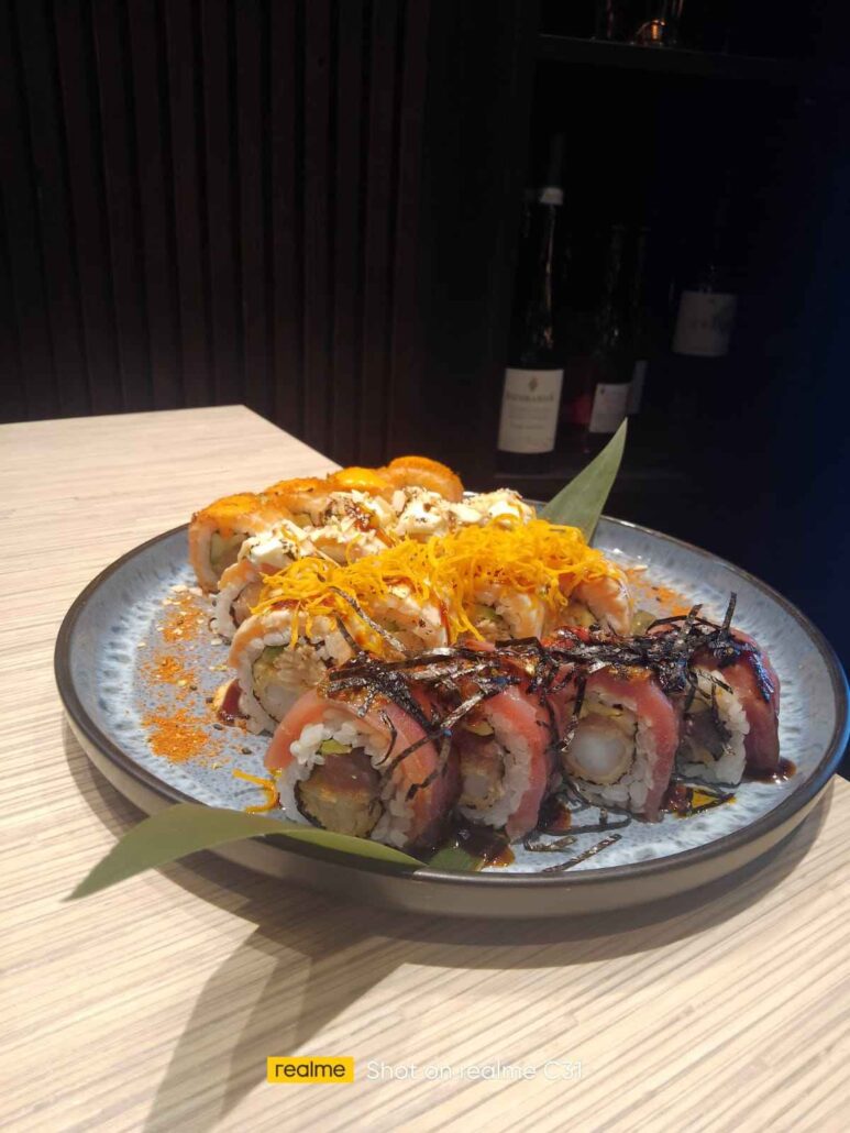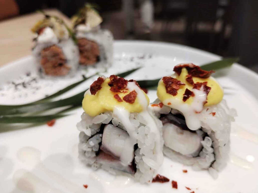 Si parte da una tempura di gamberi, per poi passare agli special rolls, come ad esempio il Peruvian roll, il Togarashi roll, il Chimichurri roll e il Reina roll. Senza dimenticare gli assaggi del Capriccio roll e e del Kraken roll.