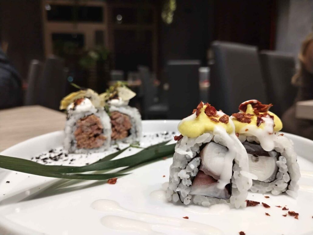 La varietà e la qualità di prodotto lasciano ampio spazio alla scelta, il sushi come la pizza sono un’esplosione di sapori e gli ingredienti sono tutti del territorio e seguono la stagionalità in cucina.