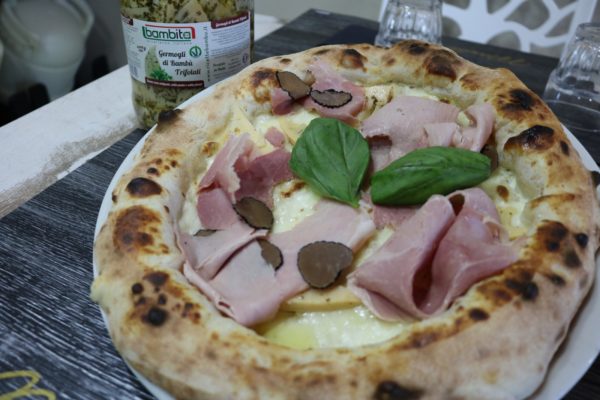 “Abbiamo adottato il bambù tra gli ingredienti per la pizza – spiega Mario Severino mentre presenta la sua specialità – con il suo gusto delicato si sposa bene con il prosciutto cotto artigianale aromatizzato al tartufo”. La filosofia che guida il progetto di Mario Severino si basa su creatività e intraprendenza nella scoperta di gusti e abbinamenti nuovi.