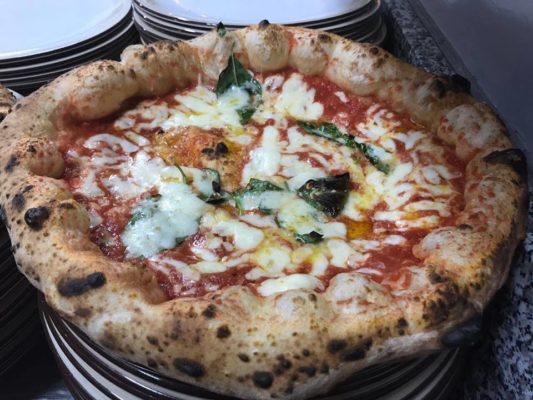 Tradizione e rivisitazione è un binomio presente anche nella pizzeria del 18 Archi, dove non manca un accurato studio degli impasti: “il pizzaiolo Tartaglia Guido ha maturato un periodo di gavetta nell’apprendimento delle tecniche di impasto, al punto da approfondirne la conoscenza delle tipologie di farine – ha spiegato Gennaro Giaccio – da quattro anni è primo pizzaiolo del locale. Determinante per la sua competenza è stato il bagaglio di esperienza acquisito presso diverse pizzerie di Napoli”. Denominatore comune delle pizze è un impasto leggero che determina un prodotto di farina particolarmente digeribile: pomodoro del piennolo del Vesuvio giallo e rosso, pomodoro San Marzano, latticini di Agerola e Provolone del Monaco non mancano nel condimento del disco di pasta.