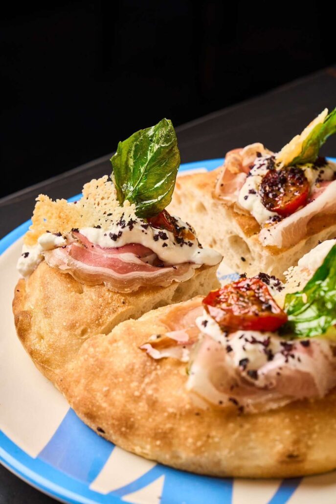Tra le pizze più apprezzate si annovera una posizione nel podio la loro Pizza Margherita Aversana, una classica margherita rivisitata in alcuni suoi aspetti. La base accoglie un generoso strato di pomodoro San Marzano DOP, sul quale si aggiunge dell’abbondante mozzarella di bufala DOP. Completano il piatto del Parmigiano Reggiano stagionato 30 mesi DOP, alcune foglie basilico fritto, una spolverata di pepe macinato fresco e un filo di olio extravergine d’oliva cilentano DOP.