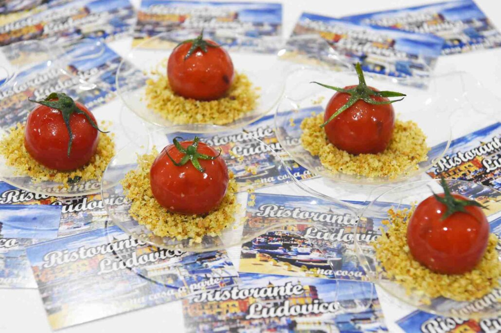 All’Aperifish di Azzurro Pozzuoli del 19 dicembre scorso il Ristorante Ludovico ha stupito i partecipanti dell’evento con il suo ricercato finger food. Una Ciliegina di gel al pomodoro, ripiena di pesce azzurro alla pizzaiola, con un crumble di pane raffermo.