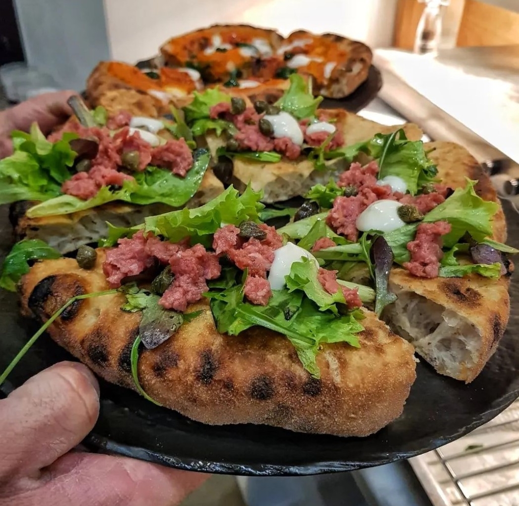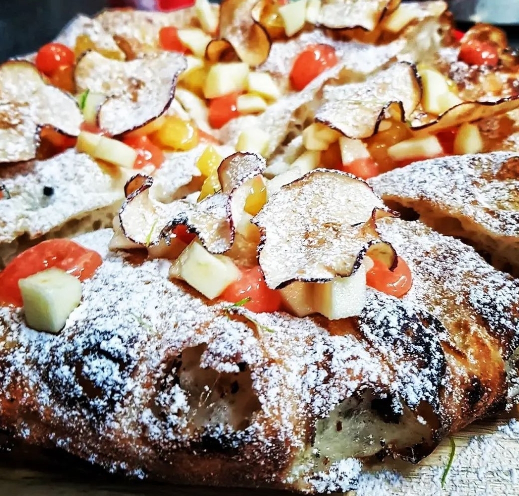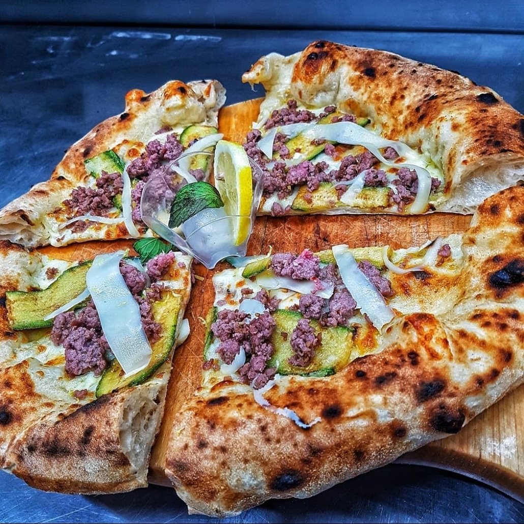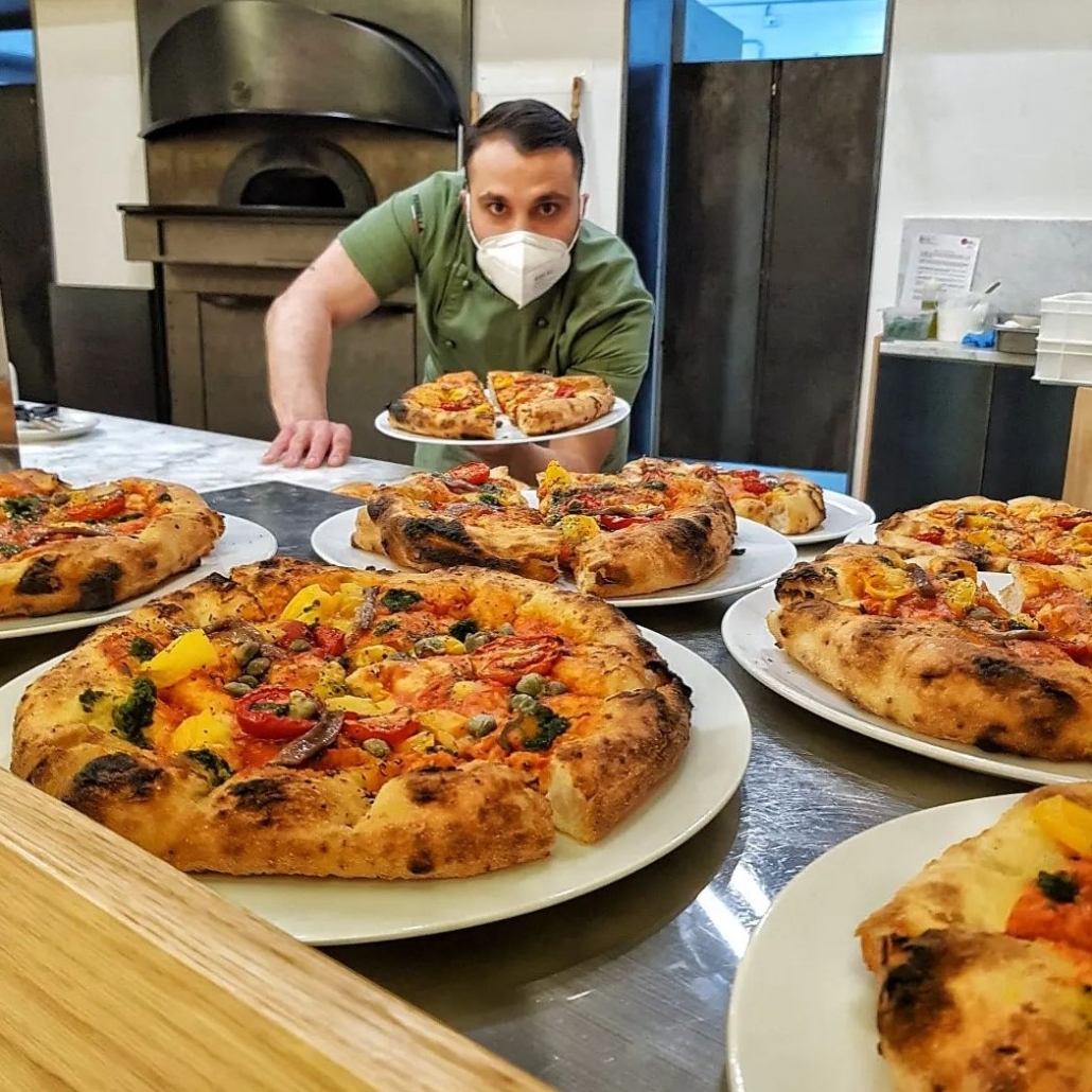 L’impasto usato prevede una tecnica ideata dallo stesso pizzaiolo consistente nel protrarsi di fermentazione e lievitazione per 36 ore a prodotto finito. Sono sette le farine utilizzate partendo da una forza elevata e finendo con una forza minore. Tra le pizze spicca la Tre Agrumi composta da una base di ricotta di pecora e di cioccolato stemperata da mandarino, arancia e limone. Molto interessanti anche la “Bona sì Forte no, la Paprika Amore & Fantasia, la Assoluto di zucca, la Profondo Sud e la Oltre la Marinara”. Gli ingredienti spaziano dal San Marzano alla mozzarella di bufala, dalle olive di Caiazzo alla crema di friarielli fino al macinato di bovino del Sannio.