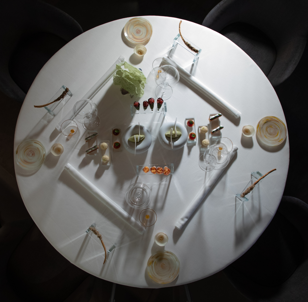 “I sapori dei miei piatti evocano la creatività di una cucina che rivela il forte senso di appartenenza alla mia cultura e alla mia terra” – sottolinea lo chef Francesco Sposito. Il richiamo ad una tradizione culinaria riconoscibile per la sua semplicità, è onnipresente. Un grande classico della cucina italiana, lo spaghetto alle vongole, si rinnova in un raviolo ripieno e condito con un sauté a base di olio emulsionato con colatura di alici, e clorofilla di prezzemolo. La sapidità di questo primo piatto di mare è complessa; il gusto è esplosivo. Il rapporto con le materie prime è diretto e quotidiano; il rispetto per gli ingredienti selezionati è assoluto. “Dall’acidità, la consistenza, l’architettura, all’anatomia”, gli elementi di ogni piatto creativo svelano un’identità inalterata. La composizione gastronomica di Francesco Sposito è sensoriale; nell’equilibrio del gusto si trova un’emozione infinita.