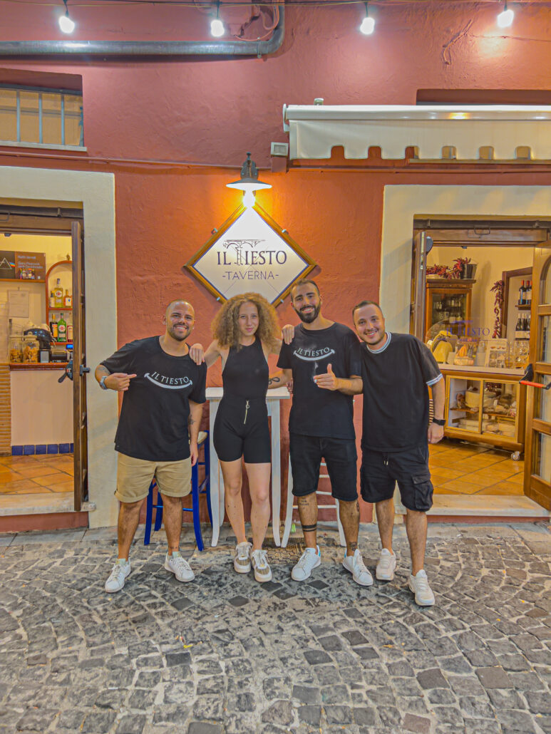“Per il nome abbiamo deciso di trarre ispirazione da un tipico piatto formiano, il Tiesto” – rivela Edwin Palmaccio. Il Tiesto è, infatti, un tipico piatto contadino, realizzato durante la Seconda guerra mondiale per sopperire alle gravose difficoltà economiche del periodo di guerra: uno strato di patate, pomodorini, melanzane e mezzi paccheri messi a crudo in forno. Il piatto diventa, pertanto, simbolo della taverna, volta a regalare, attraverso i suoi piatti, i valori della storia culinaria del luogo. Un ristorante riconoscibile, con un proprio brand idendity, diffondendo la propria cultura culinaria di alto livello attraverso i social. “Voglio unire l’esperienza culinaria con quella culturale, e sto studiando e lavorando per raggiungere questo obiettivo” confida Selwin Palmaccio.