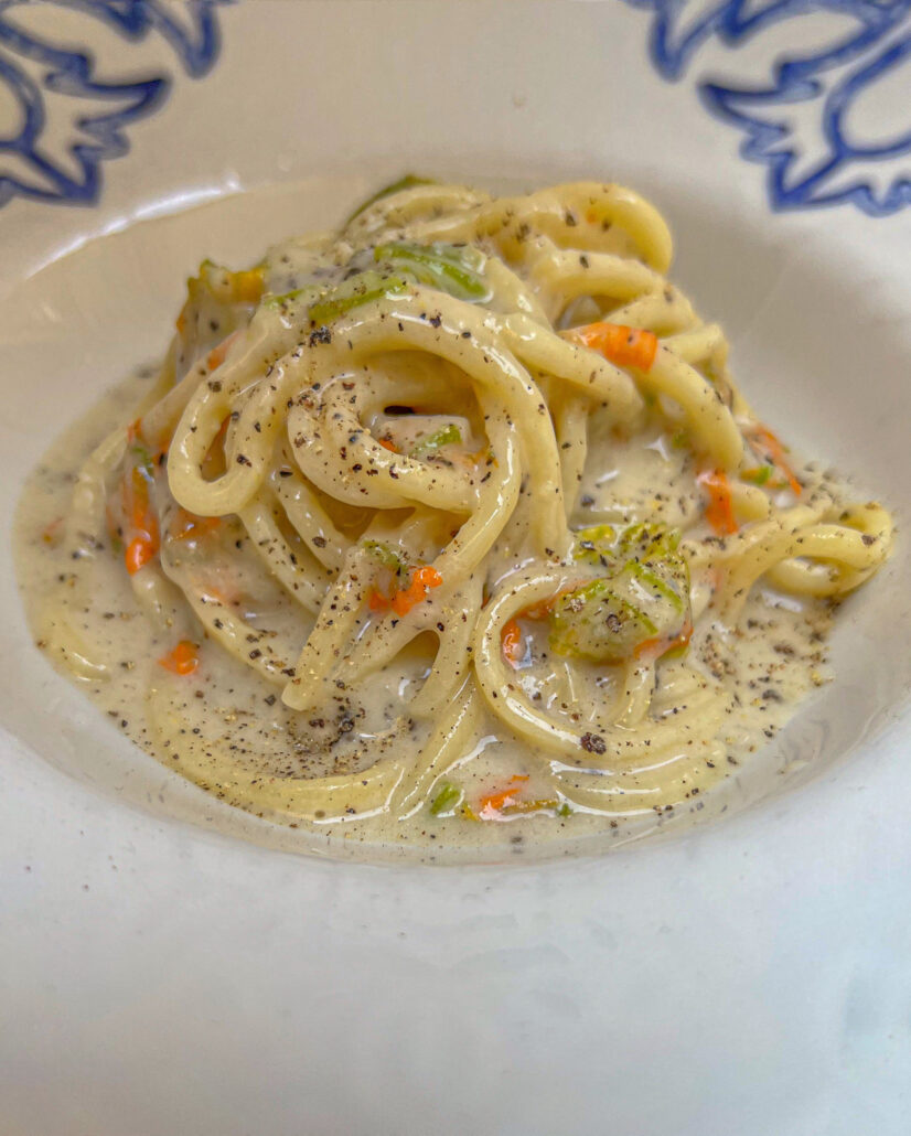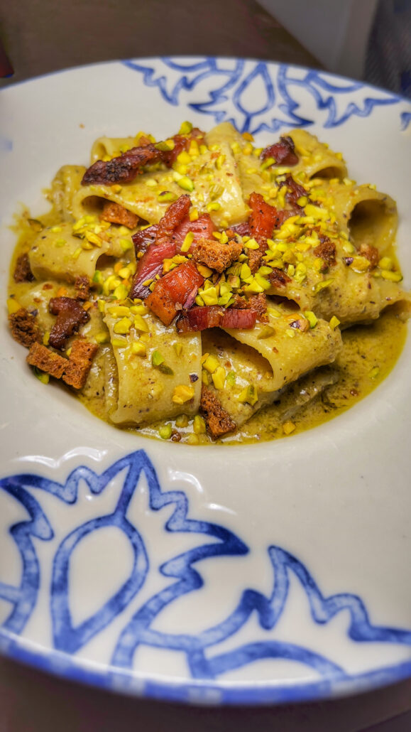“Oggi mi sto reinventando. Sto facendo, infatti, dei lavori al Tiesto. Voglio renderlo un posto sempre più riconoscibile, andando a rafforzare il nostro brand idendity. Stiamo lavorando per rendere l’ambientazione del locale simile ai vicoletti del nostro quartiere Sant’Erasmo. È come se non uscissi mai dai vicoletti: sta diventando un ambiente non solo culinario, ma anche culturale, da far conoscere attraverso le nostre pagine social. Nella giornata di domenica, inoltre, il mio ristorante deve trasformarsi in un antico presepe vivente popolare: voglio chiedere alle sagge vecchiette del quartiere di fare la pasta fatta in casa davanti i clienti, per trasportare il mio cliente nel sogno di un’antica Formia”, ci confida Selwin Palmaccio gli obiettivi futuri del Tiesto.