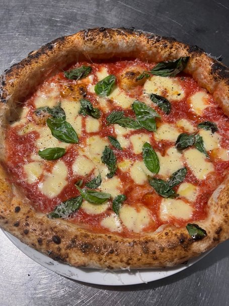 La pizza offerta da Ti Amo è una pizza napoletana contemporanea, caratterizzata dal classico cornicione pronunciato a canotto. L’impasto è realizzato con prefermento biga a freddo diretto: la lievitazione, in questo caso, avviene in buona parte a freddo, in un ambiente a temperatura controllata.