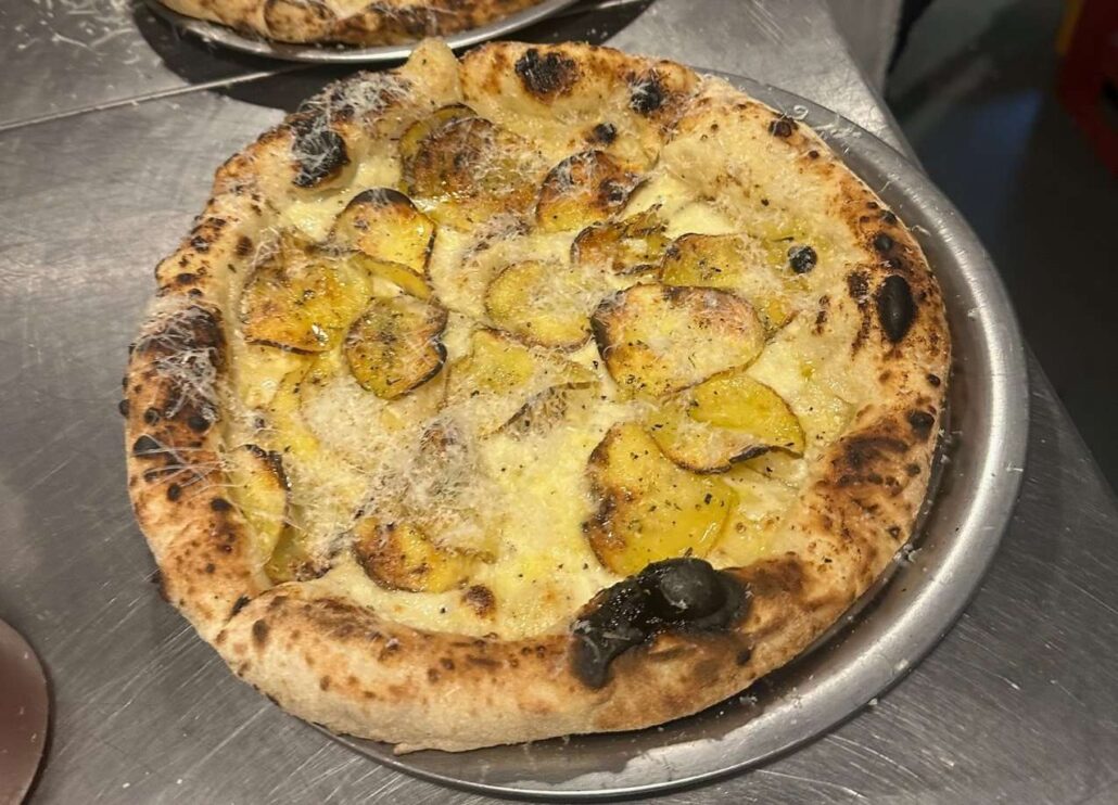 Un’altra pizza degna di nota è la Sorrento. In questa particolare pizza, oltre al classico fiordilatte, troviamo protagonista il mascarpone. Esso, coi profumi della scorza fresca di limone, si aggiunge alla base insieme al secondo ingrediente principe della Sorrento, le patate. Dopo esser state tagliate a rondelle, le patate vengono cotte in forno a legna insieme al rosmarino, quindi adagiate sulla pizza prima del servizio.