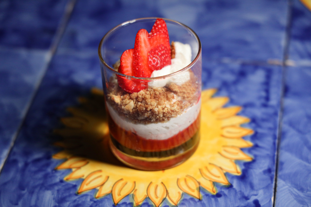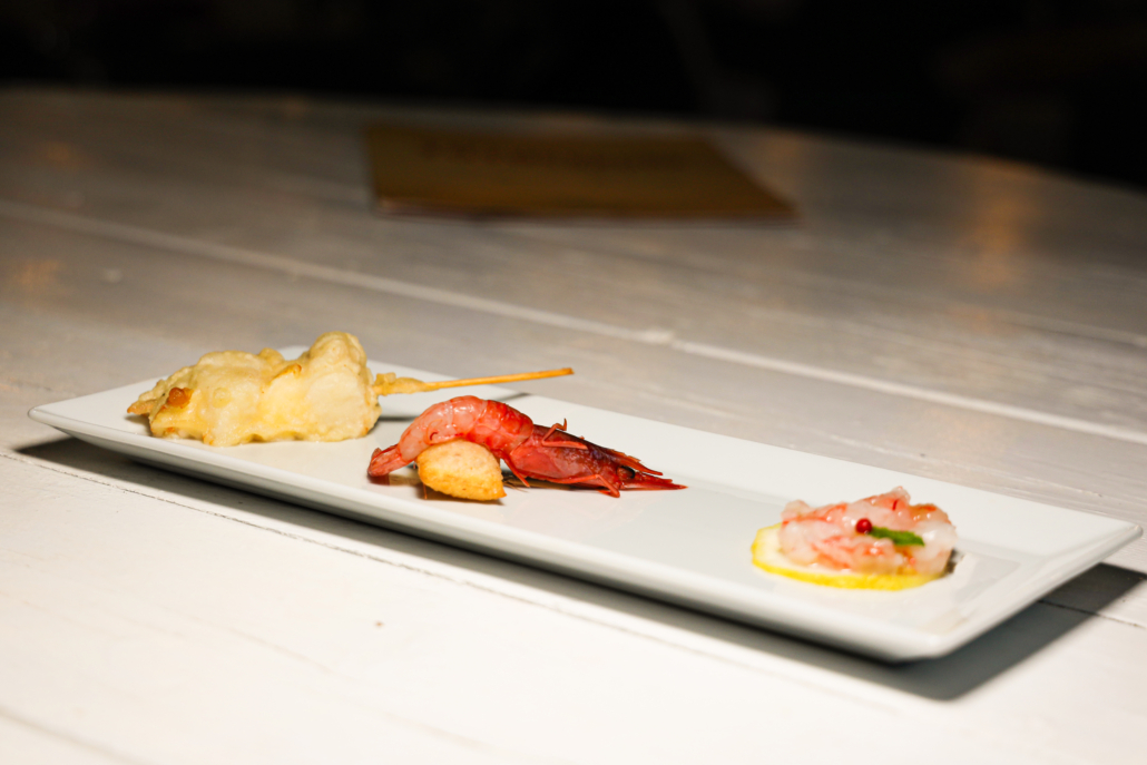 Il menù creato appositamente per l’occasione ha dimostrato le grandi competenze della brigata dovute all’esperienza ormai ventennale dei locali del gruppo. L’antipasto composto da un trittico di tartare di scampi, gamberi rossi e spiedino di baccalà in tempura con provola di Agerola e da uno spicchio di “Nerano a Mare” realizzata con un blend di farine di tipo 1 e 0 a cui il maestro Ranieri aggiunge una terza tipologia “segreta” e con un topping di fiordilatte, zucchine fritte, cozze di scoglio, Provolone del Monaco, menta e basilico, è stato il preludio di una degustazione eccellente. A seguire, il primo “Il Cartoccio di Totò”, uno spaghetto quadrato con pomodorini gialli e rossi, riduzione di gamberi, scampi e tarallo tritato, ha dimostrato come in cucina regni una filosofia tradizionale rispettosa della cultura gastronomica partenopea. Dulcis in fundo, è proprio il caso di dirlo, una mousse di fragole che ha sugellato una cena coi fiocchi.