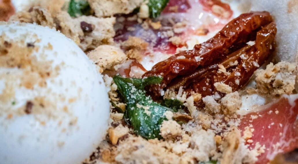 Le pizze sono tutte contemporanee, con un cornicione molto alto e pronunciato, a canotto, realizzate con il preimpasto biga, che poi viene lasciato lievitare per 24 ore.
