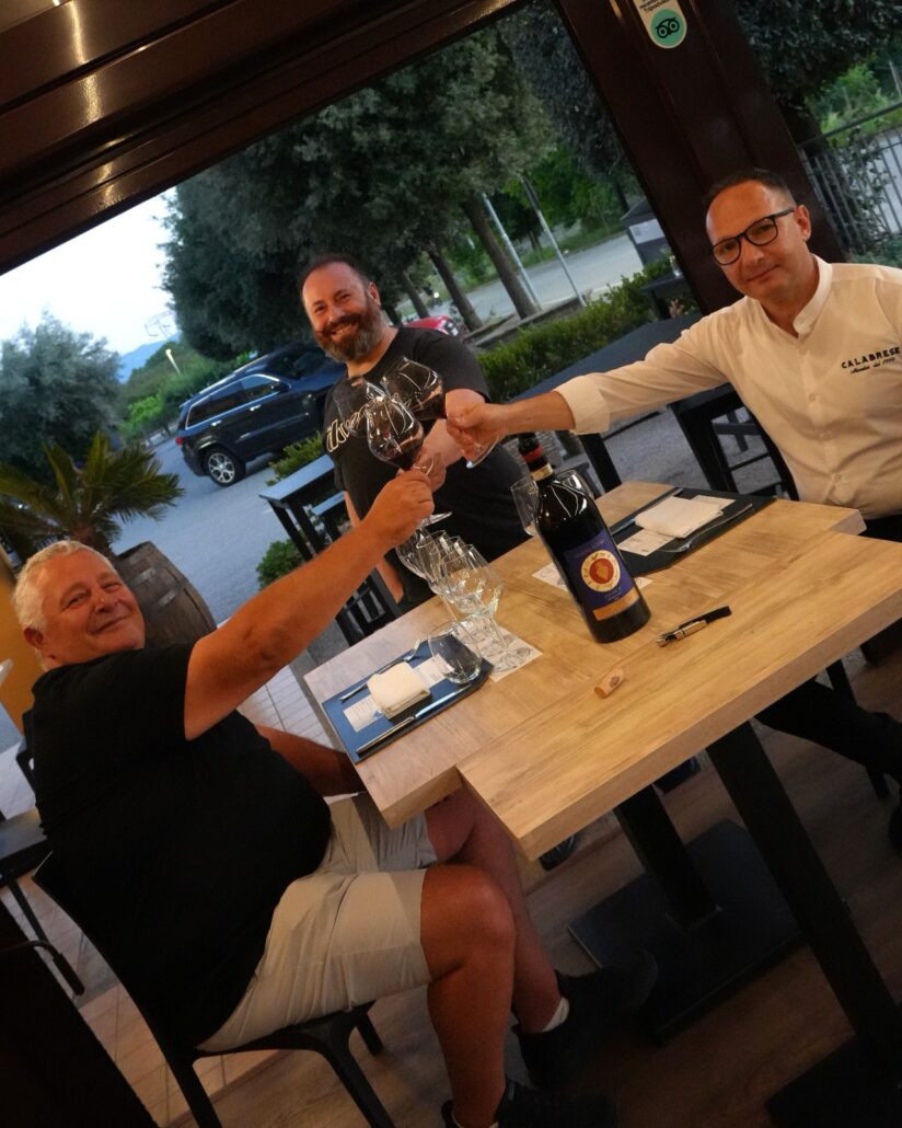Erano presenti in sala, oltre ad ospiti di eccellenze e vecchi frequentatori della Braceria Calabrese, anche Tony Fink e Mirco Colella, il quale ha voluto omaggiare i convitati con generosi calici di Indikos Taurasi Docg 2019, dopo aver stappato alcuni rari magnum di questo nettare, rigorosamente sigillate con l’eleganza della cera lacca. Dopo una preventiva apertura e avvinato i calici, l’Indikos ha dato eccellenti risultati. Infine, il dessert: la Crostata con Crema di Ricotta e Scorzette di Limone preparata dalla signora Concetta per l’occasione, rigorosamente abbinata al Limoncello della Costiera Amalfitana.