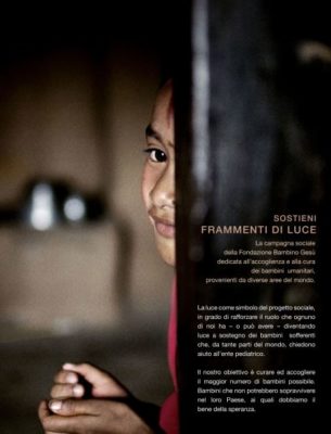 La campagna sociale della Fondazione Bambino Gesù dedicata all’accoglienza e alla cura dei bambini umanitari. Bambini affetti da gravi malattie, come tumori, malattie rare e ultra-rare o ferite da armi da guerra. Obiettivo della campagna FRAMMENTI DI LUCE è curare ed accogliere il maggior numero di bambini possibile.