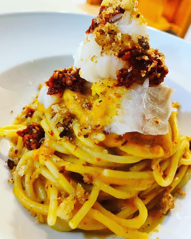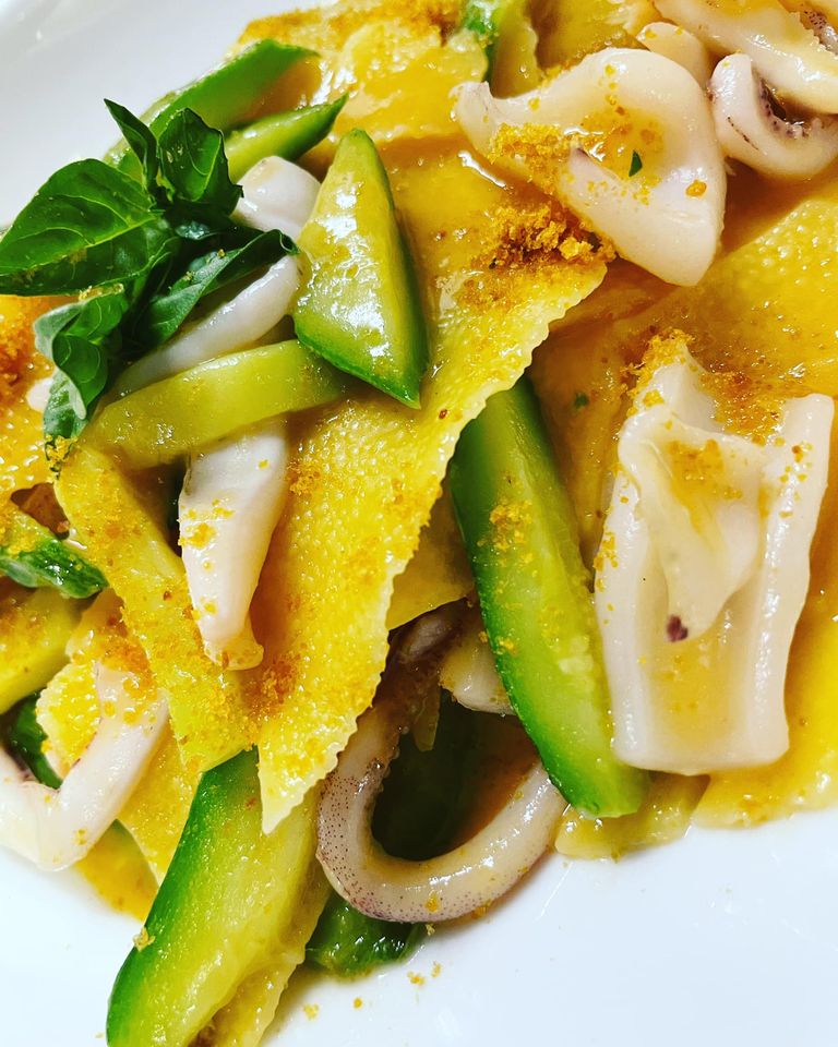 La mia cucina si ispira al connubio tra il Lazio e la Campania , ed alla rivisitazione dei grandi classici:nasce cosi’la genovese di tonno, o la cacio e pepe con tartare di gamberi crudi. i miei piatti seguono quello che il mercato offre, e quindi sono in continua evoluzione”.